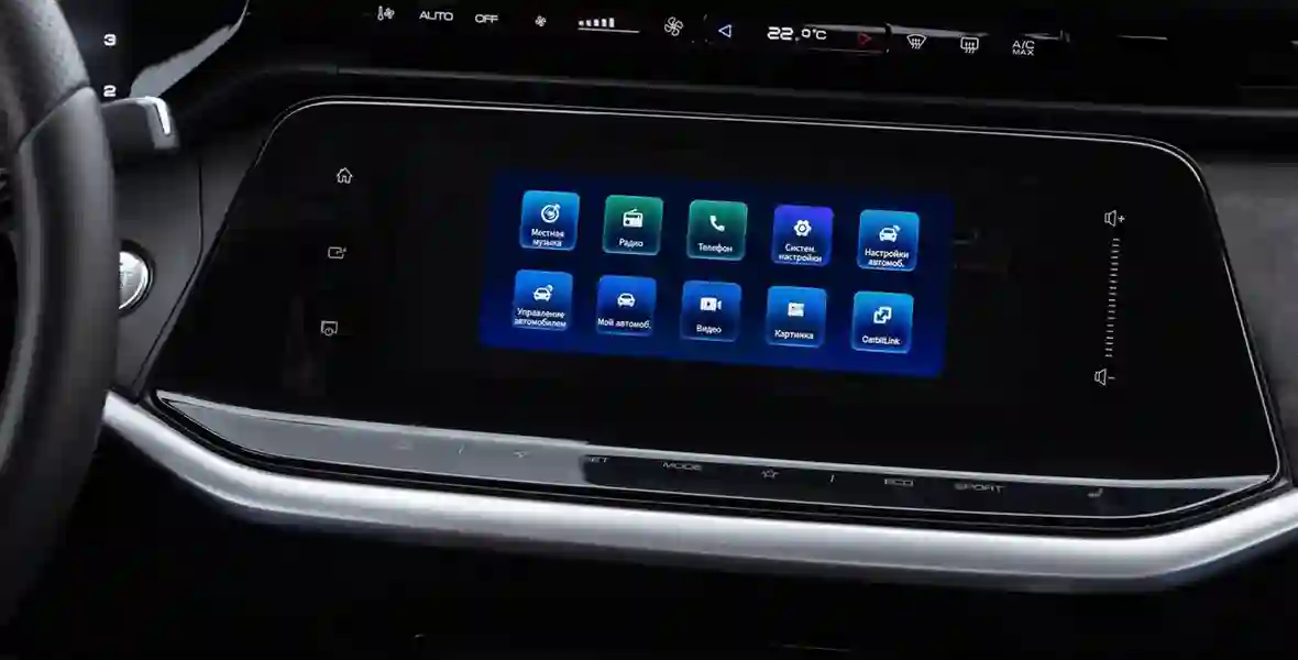 А там по меркам китайских автомобилей — прошлый век. Интерфейс комплекса невзрачный, не очень логичный, а на тестовом автомобиле (не самой свежей версии) ещё и местами кривовато русифицированный. Всё, что глубже «домашнего» экрана, — с мелкими меню, в пункты которых нужно тщательно целиться пальцами. Навигатор и Apple CarPlay отсутствуют, вместо Android Auto предлагается «местный» протокол СarbitLink, который зеркалит экран смартфона, но вынуждает держать его включённым, нагружая батарею устройства.