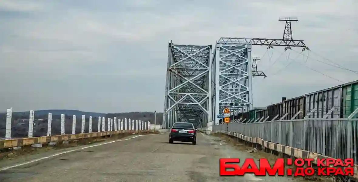 Мост проходит через реку Витим. Он был возведён в 80-е годы для строительства основных путей БАМа и всегда числился как временное сооружение, но ничего не бывает более постоянным, чем временное. Этот мост так и стоит, а нового автомобильного не построили. Его ширина практически равна ширине автомобиля, длина 570 метров, а высота над водой 15. В 2016 году проезд по нему был запрещен властями, а в 2018 одну из его опор снесло ледоходом, однако люди продолжают его использовать. Мост находится в плохом состоянии, с отработавшими железнодорожными шпалами, отсутствием перил и местами – с пустотами над рекой. Не знаю даже, случались ли тут смертельные случаи или нет.
