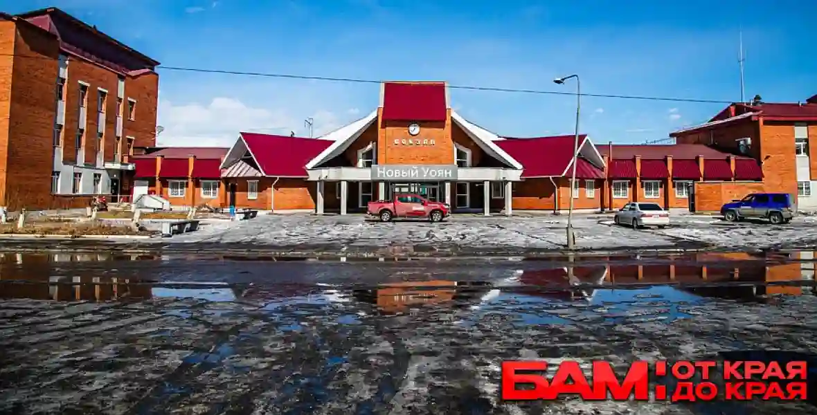Следующую железнодорожную станцию и посёлок построили рабочие из Литовской ССР. Поскольку поселок расположился недалеко от старого эвенкийского села Уоян, то его стали называть Новым Уояном. В разгар комсомольской стройки здесь проживало более 11 тыс. человек. В здании вокзала станции, архитектором которого был Шимайтис, акцент сделан на пассажирском зале, перекрытом клееными деревянными конструкциями с покрытием из черепицы. Бóльшая часть строительного материала поступала из Литвы.