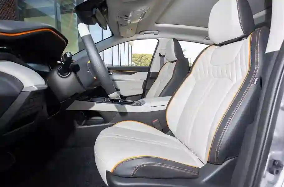 Красная полоска спереди, рифмуется с яркими росчерками в красивом чёрно-белом интерьере, хотя адепты более традиционных ценностей могут заказать и классическую черно-коричневую гамму. В любом случае, Shine Max порадует приятными материалами и старательной сборкой, да и в плюс-минус стандартной архитектуре нашлось место дизайнерским выдумкам — например, блок климат-контроля расположился над центральным дисплеем, а не под ним, а дефлекторы вентиляции скрыты от глаз и полностью лишены механических регулировок.